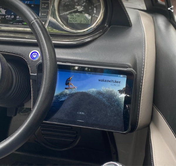 The Wakeswitches Control Tablet is the premier cockpit upgrade to enhance your Malibu. Launched and performance-proven in '23, and with a graphics refresh in '24, a powerful quad-core processor behind a 30% larger beautiful glass display runs all on-board functions, bluetooth audio, and modern apps with ease.